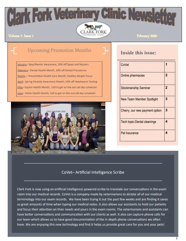 Our biannual newsletter has the most current information from the clinic. Learn about upcoming events, what we are working on and ways you can save money!